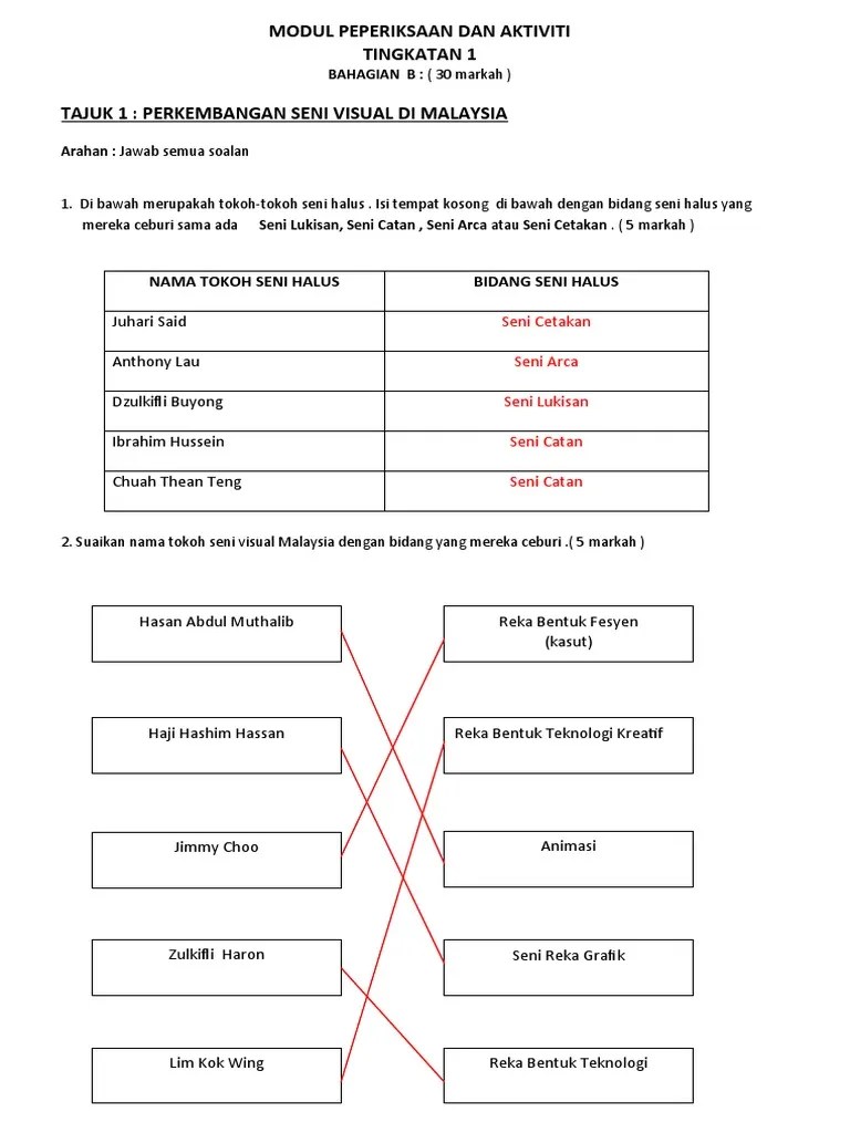 Seni tingkatan 1 tajuk 1 perkembangan seni visual di malaysia kuiz. Add to my workbooks (0) download file pdf Pendidikan seni visual tingkatan 1: Perkembangan seni visual di malaysia, s.